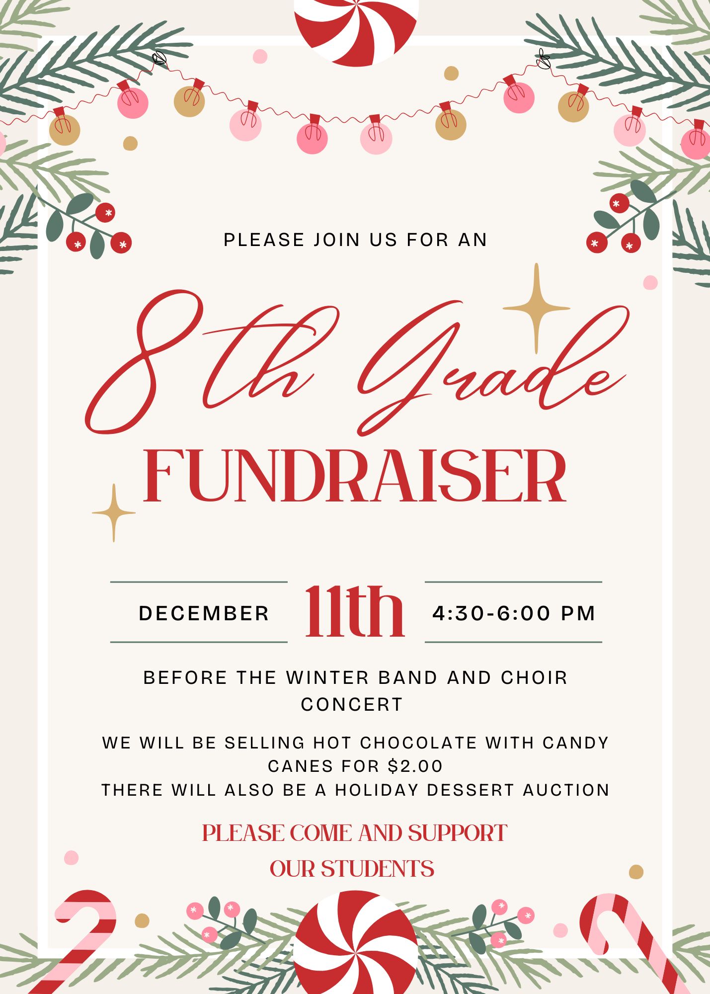 Join us for our Winter Band and Choir Concert and support our 8th grade class all at the same time! Enjoy hot chocolate, candy canes, and a Holiday Dessert Auction while listening to a wonderful pe...
